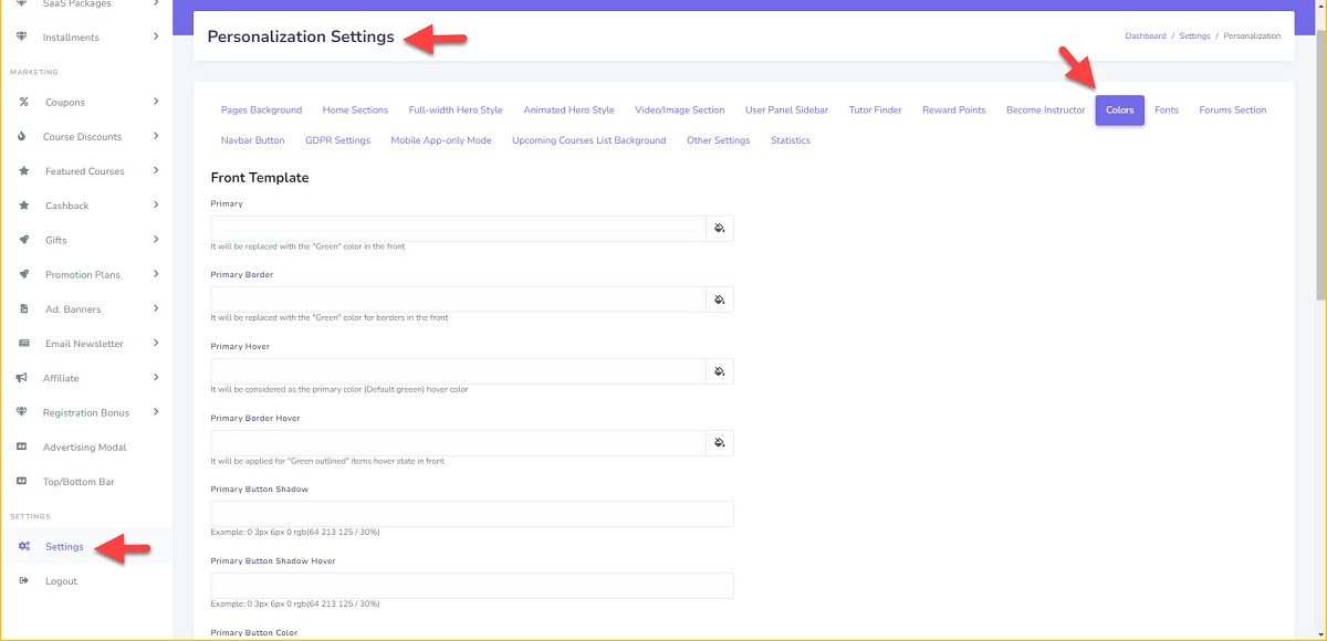 You can change fonts from the “Admin Panel/ Settings/ Personalization/ Colors” tab.