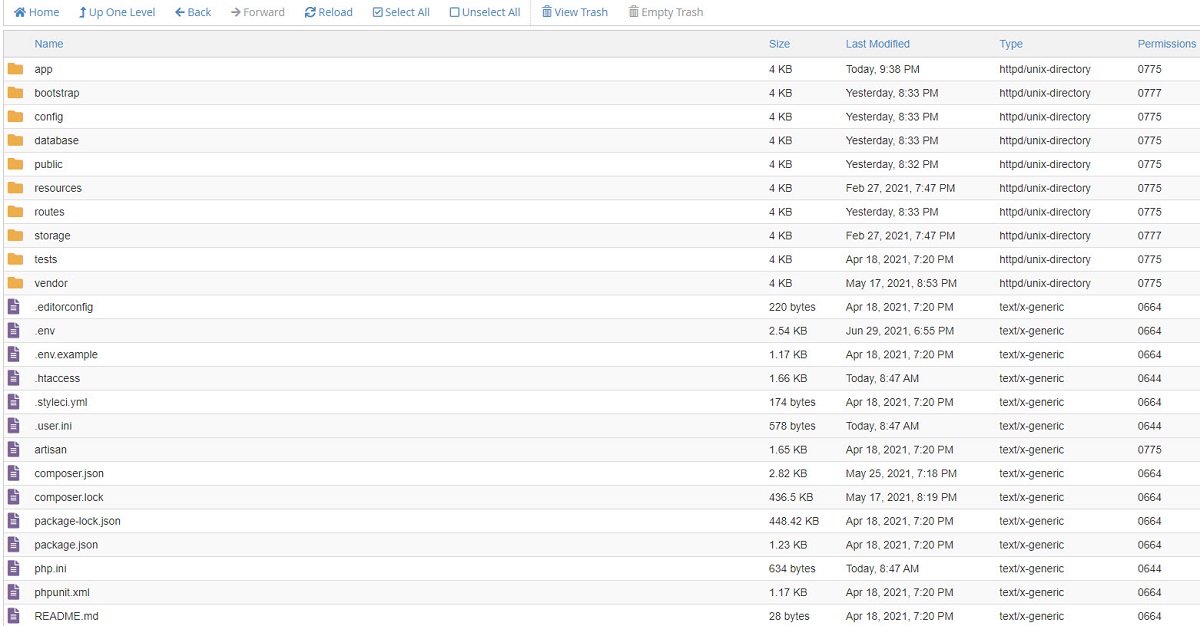 Go to the cPanel file manager and navigate to the public_html folder. Edit the “.env” file and put the database information according to the following screenshot and save changes.