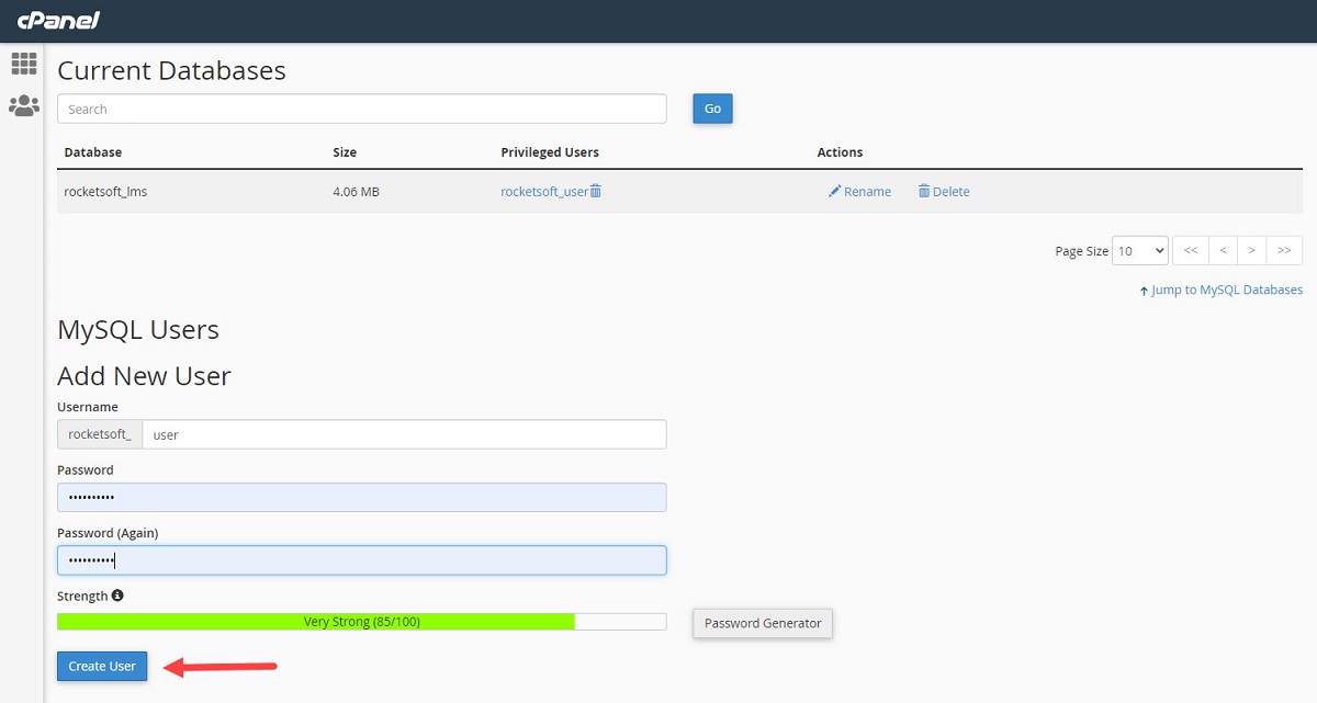 After that create a MySQL user on the same page and keep the password.